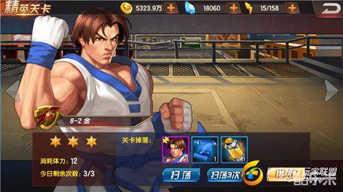 拳皇98终极之战OL精英关卡第八章神秘组织的第二个BOSS关卡是金,金这个格斗家我们碰到了很多次了,一句话来说就是弱爆了,但是三星通关也不是那么简单,因为金带来了他的两个恶徒。