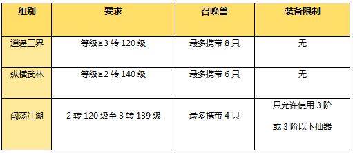 本次剑会群雄分级联赛,不同等级玩家将被按照等级区分组别进行比赛。每个组别报名有一定要求。