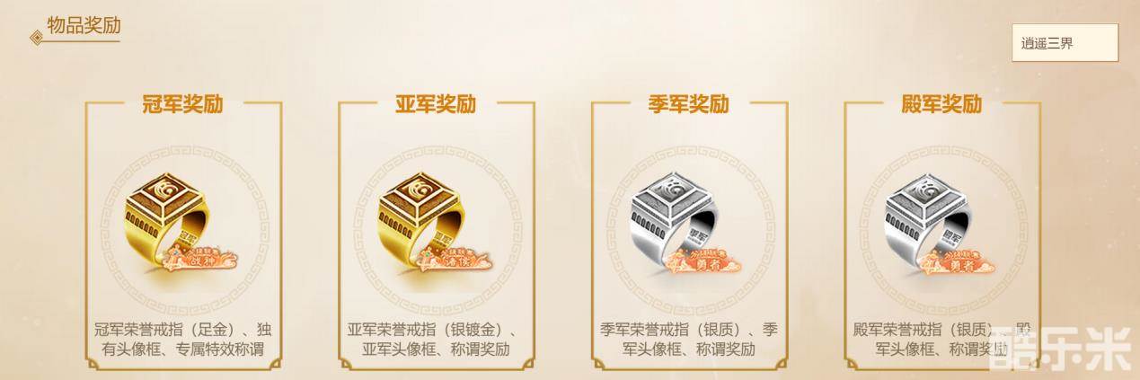 冠亚季殿军分别获得冠军荣誉戒指、亚军荣誉戒指、季军荣誉戒指、殿军荣誉戒指。