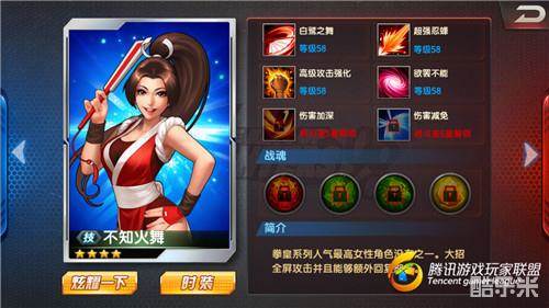 由于在14资质以上格斗家里没有选取白草这个火队灵魂人物,那么13资质就需要草薙柴舟这个玩火人士克星来填补火队核心的空缺。由于暴八与草薙柴舟都是熊魂,而里卢是龟魂。那么在格斗家选择上还需要蛇魂和虎魂来成就四魂阵容。虎魂可以用13资质不知火舞来填补空缺,而本玩法中默认开门的不知火舞被动降低男性攻击可以与雷之夏尔美媲美,而且本阵容熊魂偏多,不知火舞可以辅助回怒,是绝佳的选择。最后一个13资质格斗家因为解决了回怒问题,可以选择拥有灵魂灼烧的熊魂炎之克里斯。这样火焰流格斗家就有:暴八、草薙柴舟、不知火舞、炎之克里斯这个四个,可以满足胜利条件。