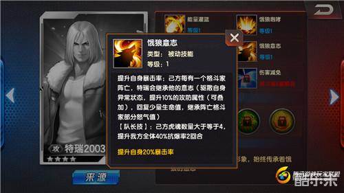 拳皇98终极之战OL中最受玩家喜爱的创世虎阵容一直因为被暴击阵容克制的致命问题而导致难以登上巅峰位置,不过在虎魂真正的核心特瑞2003登场后,这个问题迎刃而解。特瑞2003的定位跟蛇魂古利查力度一样,是创世虎的灵魂人物,四个以上虎魂在场拥有40%抗暴率。那么迎来虎魂核心的创世虎跟四魂阵容比起来又如何呢?