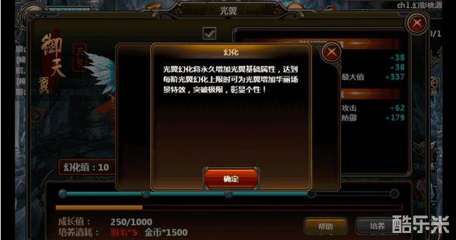 进阶就是增加战斗数据的同时在达到要求的情况下,变换光翼的外观。每次升级都有不同的名称和外貌。相信等级高了可定炫丽,其实初期的进阶大多都是百分百失败中成长,但是失败是提高了下次进阶的成功率,同时也是增加20的成长值的小生也是一路失败挺立过来的。进阶值越高,意味着您进阶时直接成功的概率越大,而且当进阶值满后会直接进阶。