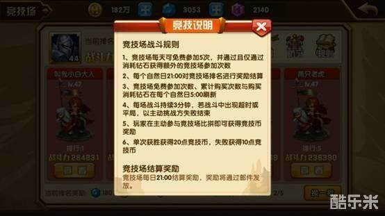 小精灵爱心贴士:竞技场在每天的21:00会根据排名发放奖励,在不购买挑战次数的前提下,建议各位领主保留2次挑战次数在20:55左右进行挑战、提升排名。