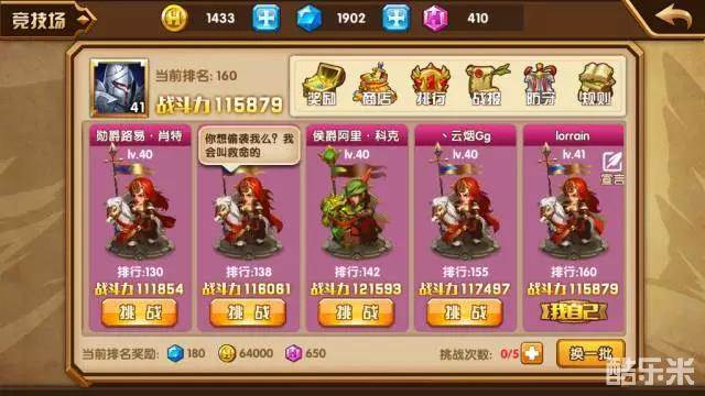 在这里各位领主需要设置自己的防守阵型,作为其他玩家挑战我们排名的一道防护墙。竞技场每天可以免费挑战五次,根据现有的排名会在每天21点发放奖励,每一场战斗胜利会有20竞技币,失败也会有10个竞技币。