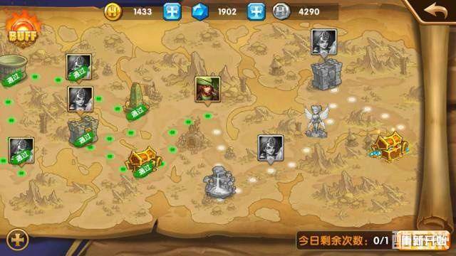 战役是游戏中一个日常的玩法,每天可以重置一次。一次远征共有29关,分为15个战斗关卡和14个奖励关卡,在奖励关卡中我们有机会获得藏宝图。战斗的规则和一般的副本相同,不同的是藏宝图和战斗增益。我们在奖励关卡有机会获得藏宝图,收集齐藏宝图就能激活宝藏,宝藏会出现在地图随机位置。有机会拜访到古老遗迹就会触发增益效果,为我们提供一项战斗增益,多个增益效果还可以叠加,这里获得复活阵亡的兵团的机会哦!