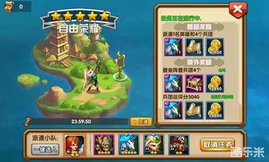 船坞是我们在游戏中一个不需要亲自操作的玩法,只需要我们设定好派遣的小队成员就可以坐等任务时间结束去收获奖励就可以了。任务的星级各不相同,不同的星级对应了不同的奖励和不同的任务时间。例如五星任务就提供了14资质的兵团碎片和大量金币,但任务时间也是高达24小时。每个任务还会有额外奖励,只要满足指定条件就可以拿到。任务结束后还可以用钻石额外多收获奖励哦!等级越高,我们解锁的岛屿也越多,能够收获的任务奖励也越多。除此之外,我们还可以通过掠夺别人截取奖励。