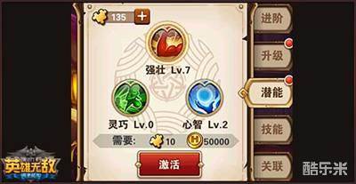 当兵团升级至满星时,会激活兵团的潜能属性。潜能属性分为三大类:强壮、灵巧以及心智。强壮能够提升兵团的生命和免伤,是防御型潜能;灵巧能够提升兵团的攻速和魔法免伤,属性比较平衡;而心智则是提升兵团的攻击和兵团伤害,属于攻击型潜能。升级潜能不止需要的兵团碎片,还需要大量的金币,看来想要触碰战力巅峰也是不容易啊,路漫漫其修远兮,各位玩家们还是需要耐心的积攒资源,来突破战力极限。