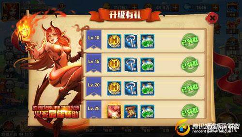 等级提升至20级:金币*80000、银钥匙*2、兵团经验*1500