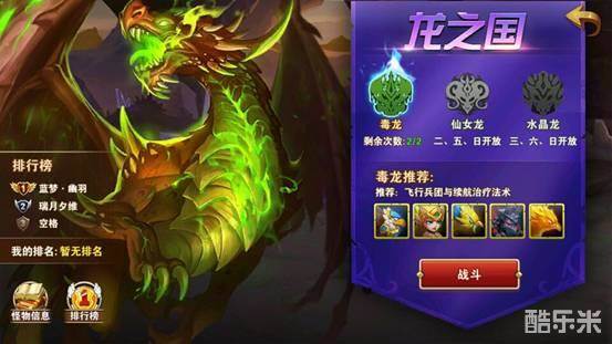 从龙之国这个玩法来看,所设置的难度还是比较大的,并不是简单排兵布阵就可以了,他对于玩家的战斗力同样有着不小的要求。而且随着难度的提升,要求也就越大。那么在本期攻略中,将详细给大家介绍一下困难级毒龙的一些过关技巧,希望能给大家带来帮助!
