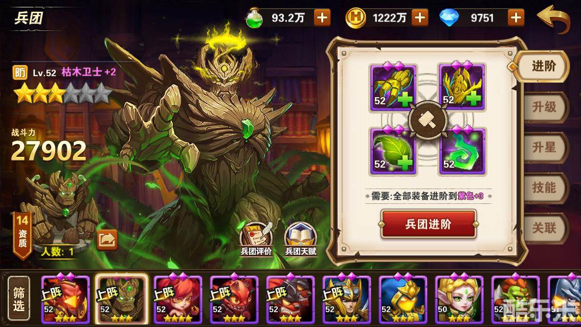 如果说十字军是多人肉的杰出代表,那壁垒阵营的枯木卫士就是最典型的单人肉,不仅自身坦度极高,更难能可贵的是这是一个功能性的坦克。稳定的范围减速为后排射手连击创造了良好的输出环境,当罗伊德上场时,团队套盾的技能效果,更是在前排筑起了一道坚不可摧的血肉长城。作为游戏前期比较易得的单人防御兵团,在抗英雄伤害魔法这一点上,枯木卫士具有极为明显的优势,值得一路培养到后期。当配合格鲁上场时,木精灵和弩手是主力输出兵团,敌我双方都明白这一点,所以很容易被针对。木精灵虽然输出不如弩手那么爆炸,但是生存能力却略胜一筹,自身有护盾保护,配合银翼飞马套盾和僧侣回血,往往能坚持输出到最后一刻。