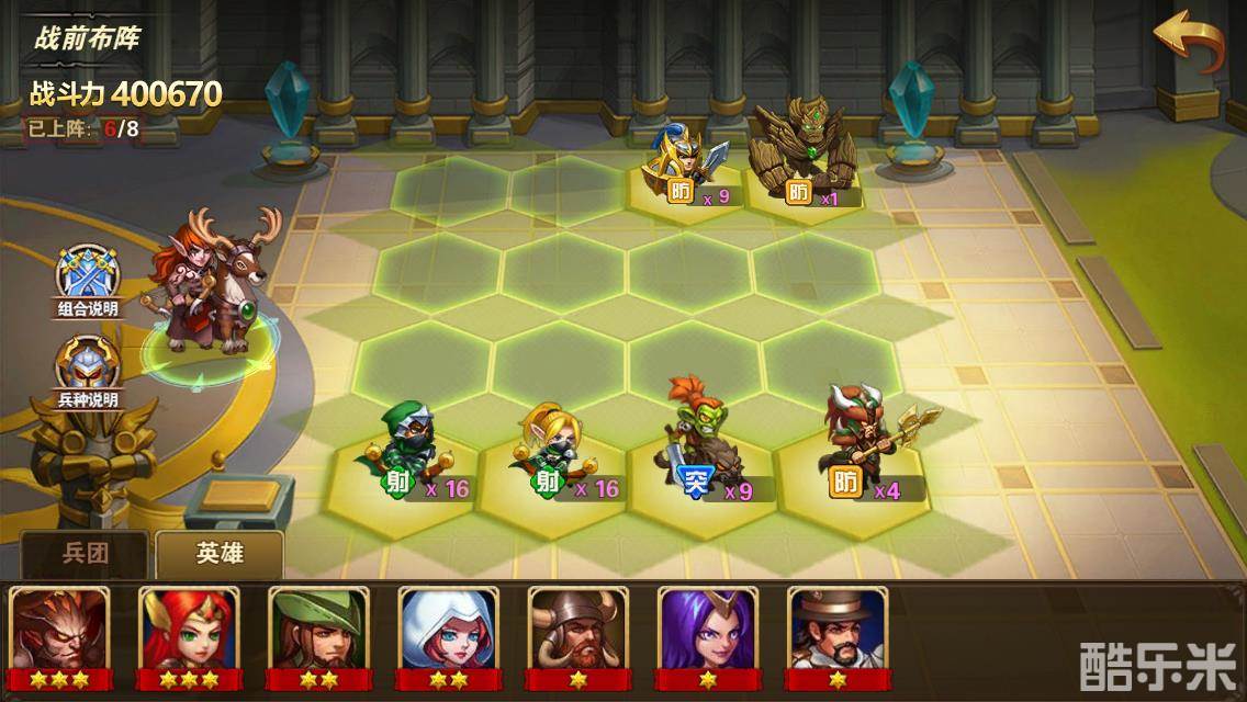 其实除了两个射手兵团,还有十字军和恶狼骑士可以享受减速效果,之所以很少提及主要是由于他们在这套组合中的位置比较尴尬。十字军要到紫色才会解锁连斩技能,此时已经开始进入游戏中期,军团选择也从正义联军逐步过渡到地狱军团,当十字军开始享受减速效果时,上场机会也越来越少了。恶狼骑士属于突击军团,仅在破点阶段短暂的享受减速连击的组合,一旦破点就会深入敌阵,与能够创造减速效果的前排防御兵团分离,所以效果并不明显,当凯瑟琳上场时倒是可以考虑将其编入突击队中,享受大招的减速效果。