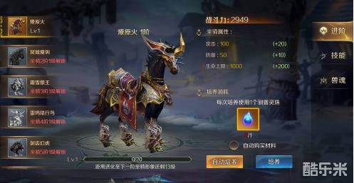 坐骑进阶:可以通过驯兽灵珠进行培养提升等级及阶数