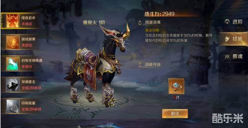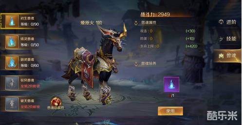 坐骑兽魂:其中兽魂数量有上限且兽魂属性所有坐骑共享(免去重复培养)