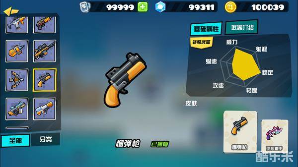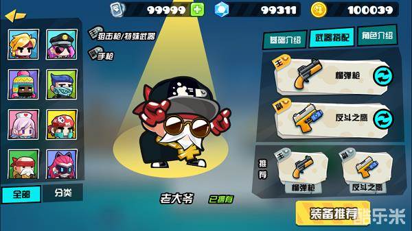我们可以发现这就是系统推荐的武器搭配,对于老大爷来说可以诡秘莫测的榴弹和自己炮台的稳定射击成为了一个合理的防御阵地,让人躲闪不及。找到狭隘的2人宽路,用炮台顶住上方或者下方,不管对手怎么躲,我们的子弹非常容易就弹跳并击中对方,对方只能选择逃跑。而副武器手枪就是我们用来追击残血或者没子弹时的一个保险,轻便的手枪可以让老大爷健步如飞,就是那些年轻少男少女也没几个可以逃得掉。