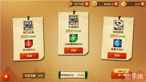 B、每次打最好打中间的,战力最好比你低1万几千的,这样保险,当然如果刷到右边的战力也很低,你就打吧;因为赢了输了都是会扣次数的。