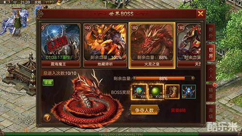 是不是厌烦了半个小时的辛勤劳作,被人一刀夺走的痛心疾首和满不甘心。这一次我们换个玩法,特设世界BOSS,参与人人有份,怎么有份?你过去蹭了一刀,不动了,先吃完饭喝杯茶,回来无论是谁最后击杀,您的奖励还是稳稳到手。见者有份,可不能只是说说。