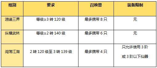 本次剑会群雄分级联赛,不同等级玩家将被按照等级区分组别进行比赛。每个组别报名有一定要求。