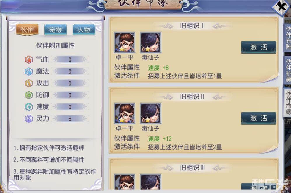 3.招募等级——决定伙伴招募所需要的人物等级,只有当人物等级≥招募等级时才能招募