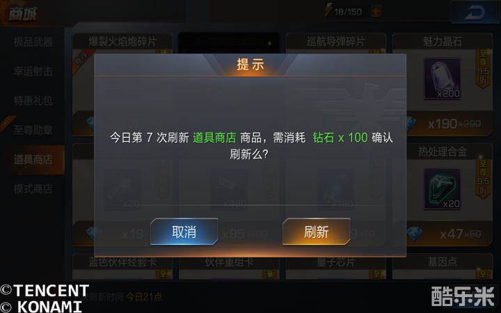 道具商店会刷新出“JS-DSR”和“涡轮喷射枪”的碎片,运气好每天免费刷新后出了的话,买下来可以尽早合出橙枪提升火力;运气不好也可以自己花费钻石来刷新,但是小队长还是希望各位指挥官在这方面可以把握好一个度。如果实在是只差最后一个碎片就能合成枪的话,也只建议刷新4次左右,没必要一时赌气,把钻石全部耗费在这。