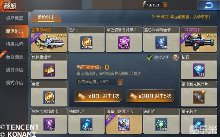 类似的还有商城10连抽,一次就要花费1680钻石,对于想要橙枪奔雷和毒气的指挥官来说,小队长推荐存够了一定数量的钻石再来。毕竟物以稀为贵,好东西都是有代价的。当然如果出了10连抽的打折活动之类的,肯定是要趁着好机会去博博运气。