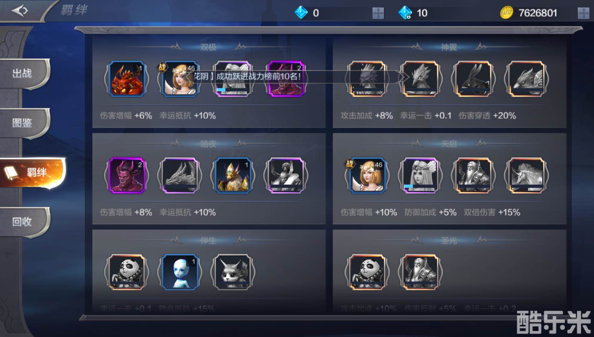 在精灵这方面没有太多好说的技巧,主要就是把牵绊组成一套,这样会有一些加成的。有一些多余的水平是可以回收的,回收完了以后可以购买新的。因为精灵必须升到二星才会有第二个技能,所以把那一套的精灵全部加到二星。