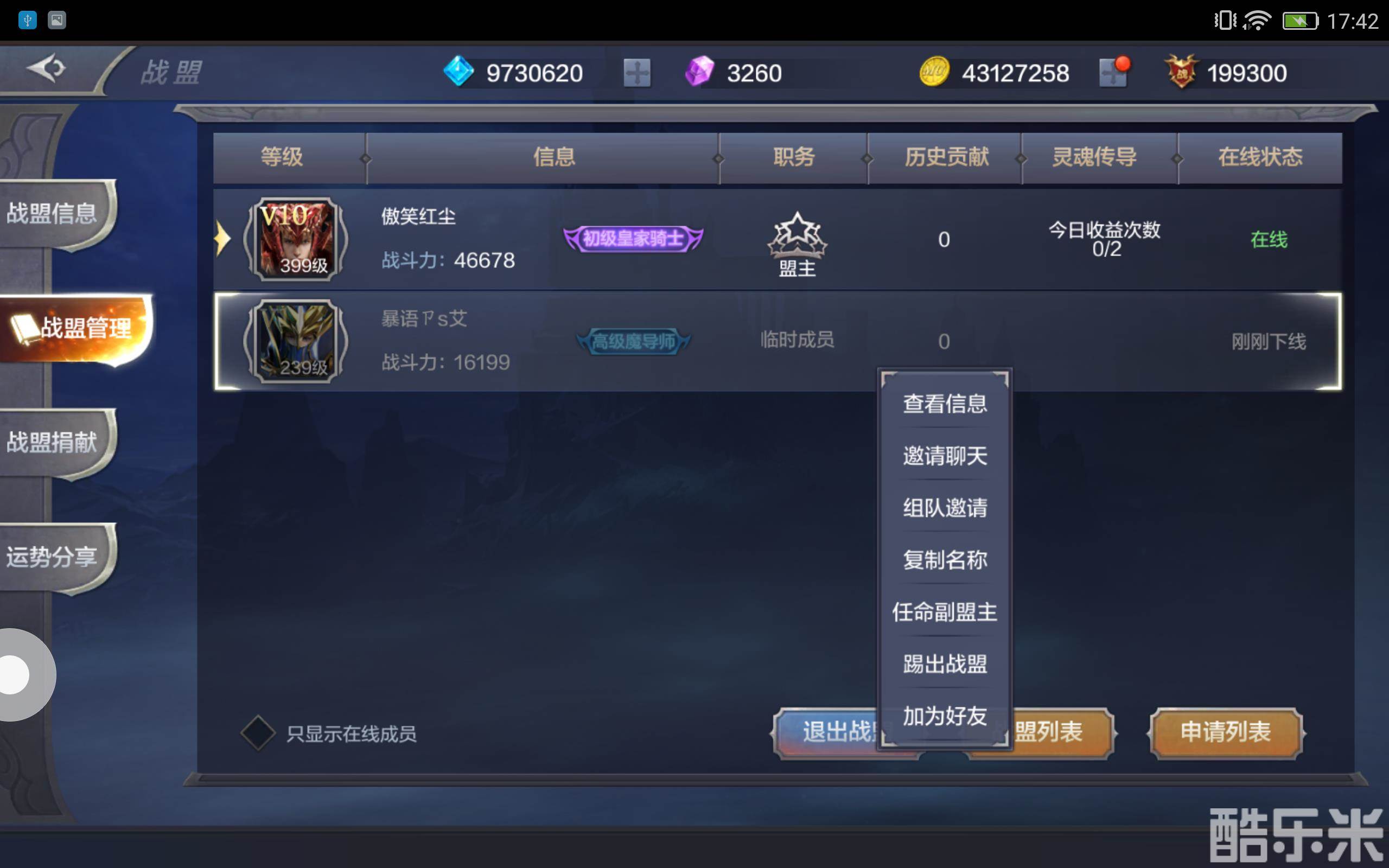 玩家可以在战盟管理界面进行成员任命、开除、发布招募信息和管理战盟申请。