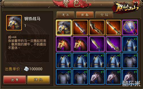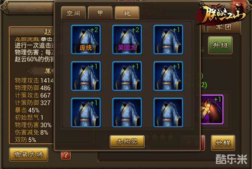 游戏中橙装难求,就像橙将一样。商店刷出来也不一定买得起,买得起也强化不起。所以不可能每个武将都配置顶级装备,这个时候也能拿起换装玩法。偷袭时,给你的攻城车武将配上高级的“明光甲”,抗住高级城池的伤害也不在话下。当你的武将在前排和后排切换时,武器也可以跟着切换,担任前排换上攻防兼备的“刀”、“剑”类武器,做后排输出时换上“枪”“扇”类武器,一切都要灵活变通。