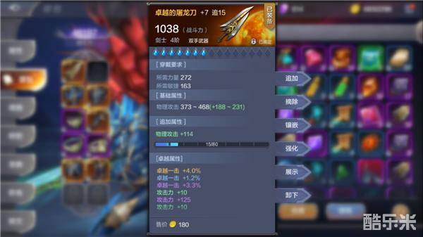 此时的玩家至少头盔、铠甲、护手、靴子、护腿和武器要达到橙色四阶,才可以不落后于他人,如果有自己的奇遇的话说不定能略胜同等级玩家,推荐剑士橙色的四阶卓越屠龙刀,虽然是双手武器,防御能力差了点,但是在这个等级的PVP对战中,伤害可以更加理想一点,不用畏惧同等级的玩家。