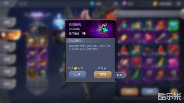 透明披风是用来进入血色城堡的道具,众所周知,进入血色城堡可以击杀大量恶魔,获得高额的经验奖励以及祝福宝石,在升级进入瓶颈期时十分适合来这里刷怪,所以恶魔披风也是十分重要的道具之一。恶魔披风的获得途径有很多,其中最主要的还是通过合成获得。在合成界面选择道具合成,再在配方列表选择透明披风,放入玛瑙宝石以及血灵之书和血灵之骷便可合成透明披风,这几种材料都可以通过刷怪来获得,这是最主要的获得方式。另外还可以通过完成任务与活动来获得透明披风。