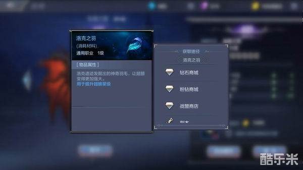 洛克之羽是用来升级翅膀的材料,而翅膀每次升级都会提升人物的各方面属性和战斗力,所以这也是及其重要的道具之一。洛克之羽的获得方式多样,玩家可以直接通过钻石商城以及粉钻商城和战盟商店、交易行、藏宝阁购买,但是需要花费一定的费用,最基本的获得方式还是通过刷副本和万魔塔。