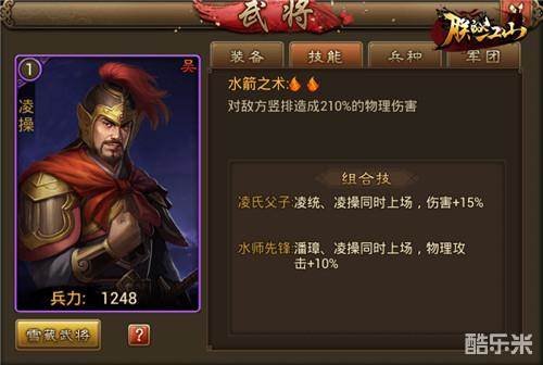凌操,轻侠有胆气,早年跟随孙策征战,相当勇猛。其子凌统是吴国的名将,为人有国士之风,更是被陈寿赞誉为“江表之虎臣”,又是虎父无犬子的正面案例。游戏中父子两人一起上阵可以触发“凌氏父子”的组合技,增加15%的伤害,相对实用性就高了很多。