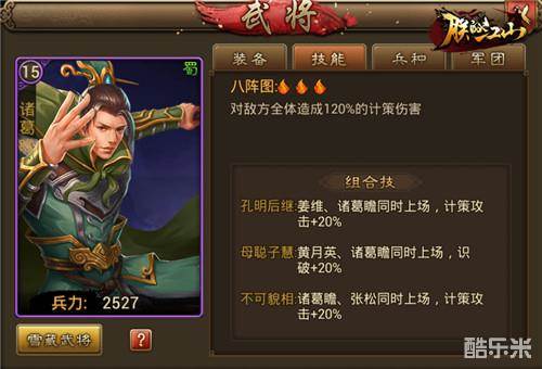 诸葛亮被誉为三国第一谋士,实力不容置疑。其子诸葛瞻聪慧过人,虽然难以比得上诸葛亮的,但诸葛瞻在绵竹之战中坚守战死,也算是忠烈。游戏中父子二人同为群体攻击武将,“八阵图”加“奇门遁甲”打野城肯定是不错的选择。