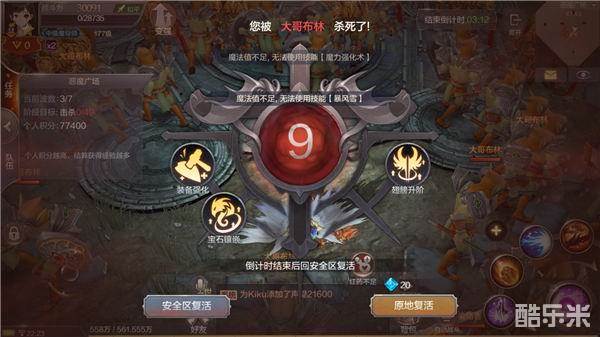 2.游戏中玩家可能会因为血量不足死亡,死亡时候并不会失败,玩家可以选择原地复活和安全区复活两种;在恶魔广场副本中两种复活方式并没有多达差别,为了省钻石还是选择安全区复活比较好~