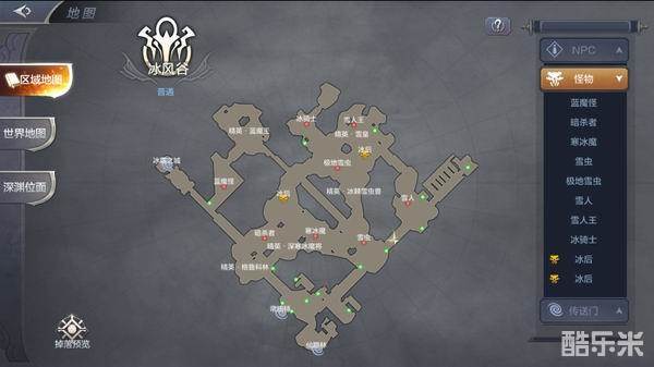 刚玩游戏的玩家会出现对地图不熟悉,NPC不知道位置的情况,这时候只要点击界面右上角的地图,在右边的菜单里选择你想要找的NPC、野怪或者传送门,再点击子菜单的具体名字,系统就会自动进入寻路状态。这样就再也不用担心找不到目的地啦。