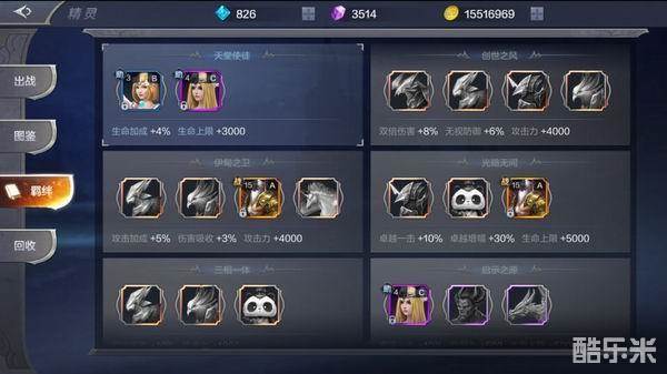 精灵:在精灵方面主要就是把牵绊组成一套可以获得战斗力加成。精灵的技能增加需要等级提升,所以要把一证通的精灵全部加到相同的等级。等级越高战斗力也就越强。