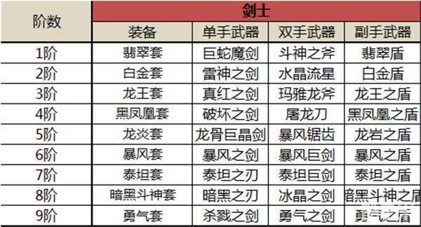 除了装备天生的品质外,装备还分很多的品阶,品阶越高,装备的天生的属性就越强大,玩家想要佩戴所需要的个人要求就越高,例如剑士的一阶单手武器为巨蛇魔剑,二阶是雷神之剑,同一品阶有着同样的名称,品阶无法通过后期提升,所以一开始的品阶越高,未来的发展潜力就越大,这也导致玩家在考虑装备强化时,不仅要考虑装备自身的品质,还要考虑装备的品阶,只有当装备品阶够高品质够好时,它才有足够的培养价值,这样可以减少玩家在更换装备时的浪费。