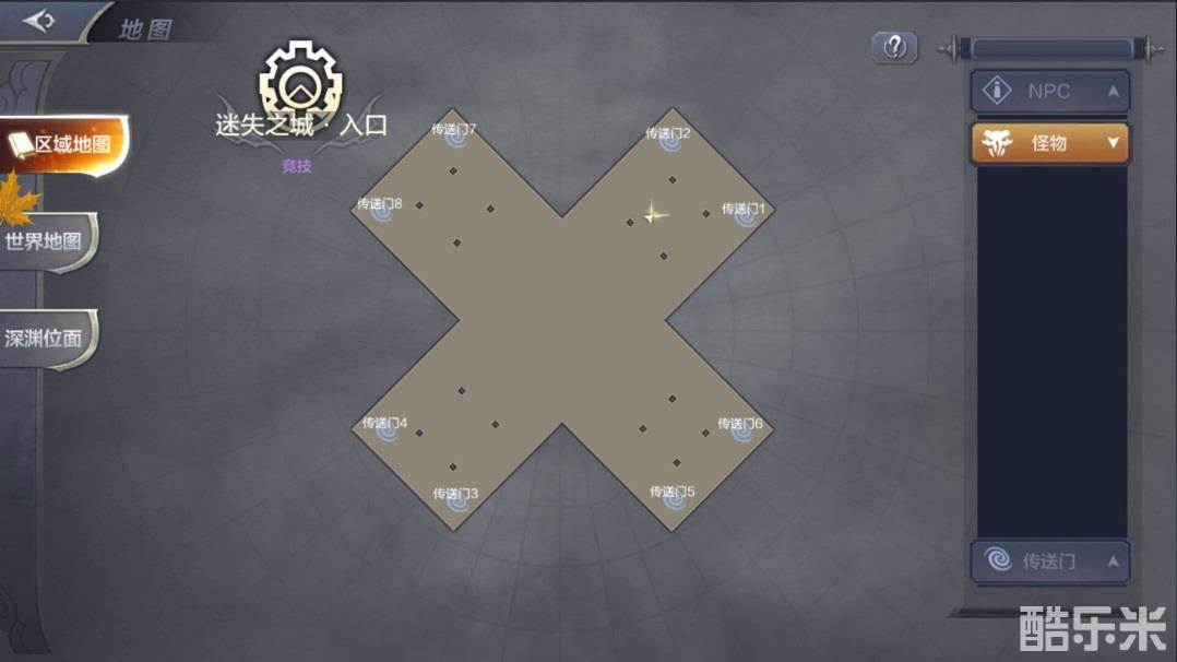③迷失之城有8个入口,同战盟的玩家可以从相同入口进入,尽量与战盟成员和好友同时进入,以增加生存几率,进入迷失之城将自动切换为战盟模式