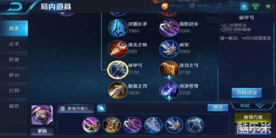 巡守利斧+疾步之靴+暗影战斧+冰痕之握+破军+破甲弓