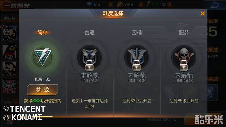 一命通关中的外星敌兵前所未有的强大,指挥官一旦碰着非死即伤,小队长觉得它们比起高难副本中的BOSS也丝毫不弱,而且更加具备一击致命的攻击潜质。虽然一命通关的难度颇高,但通关后的奖励幅度也令小队长垂涎三尺,魅力晶石、金币、精通点卡多得让人数不过来!为了进一步拉开众多指挥官的技术层次,一命通关更是开通了简单、普通、困难、噩梦、地狱五种逐渐递增难度的新模式,大有让指挥官不服再战的高深寓意!