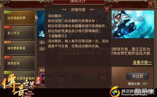《传奇世界手游》远征海底世界活动参与及奖励介绍