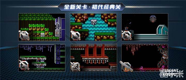 初代经典关还原了初代魂斗罗里面的6个经典关卡,分别指定不同的武器。关卡内有飞行胶囊,可以击落来获得各种补给有攻击、回血、加速等buff。在初代经典关里,通关就可以获得积分,通关时间越早积分越高,当然,如果不能通关还是有一定积分奖励。