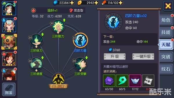 在《灵妖记》手游中,天赋系统需要主角达到6级,通关“南山石林”关卡解锁。伙伴天赋功能包含了伙伴的天赋属性类型,天赋属性升级,进阶以及天赋系统中的共鸣玩法等,主要是提升伙伴的属性提升战力。