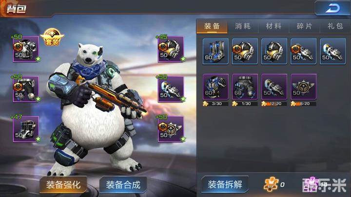 在背包里,指挥官可以拆解装备,把不要的装备进行拆解,淘汰的紫装可以分解出紫色万能碎片。这时利用碎片熔炼功能,就可以把装备碎片融合成装备万能碎片,用装备万能碎片合成现在所缺失的装备。