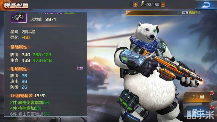 六件套:当你拥有同款套装六件不同的部件时,将激活六件套属性——暴击伤害提高5%。