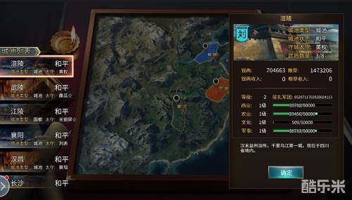 选择了势力范围之后,要开始选择势力内的城池了。曹魏势力可选择的城池包括华雄驻守的关隘虎牢、徐晃驻守的陈留、李儒驻守的洛阳等;东吴势力可选择的城池包括程普驻守的国都建邺、袁胤驻守的九江、吕蒙驻守的丹阳等;蜀汉势力可选择的城池包括黄权驻守的涪陵、关银屏驻守的江陵、刘表驻守的襄阳等。不同的城池的资源数量、城池等级不尽相同,各位主公选择的时候需要留意。