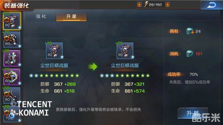 指挥官在穿戴装备后,还可以对装备进行强化、升星,这样可以大幅度提升装备的属性,从而进一步提升闪避。装备品质的高低,会直接限制装备所能强化的等级。当指挥官所穿戴的装备品质高时,比如穿戴橙色装备,可以最大程度地对装备进行强化,从而发挥会装备的全部性能。装备升星并不会受到装备品质的影响,不过需要消耗热处理合金。指挥官可以通过参与枪械大师、组队玩法进行收集。