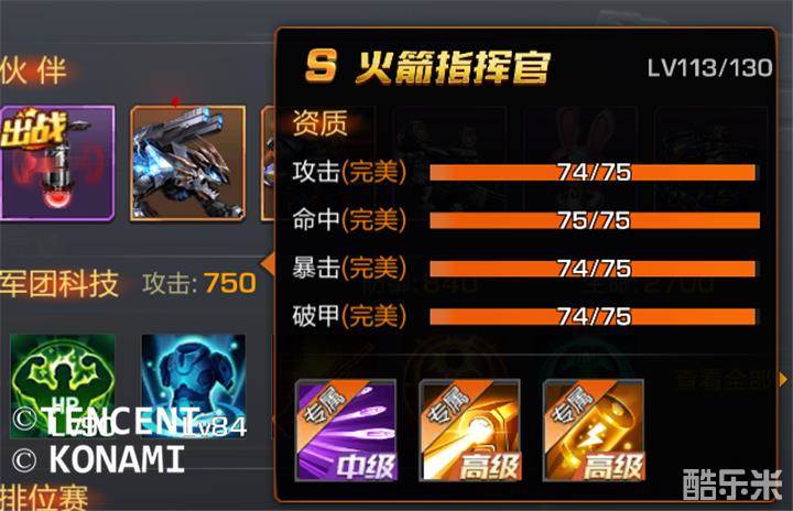 S级伙伴不仅有着高额的最大属性值,以及强力的技能,而且还可以有三个助战伙伴,相对A级和B级伙伴强了不是一点点哦。下面来对比一下目前的两个S级伙伴,从图一、图二可以看出骁电单项满能力值为77,火箭指挥官则为75,可以见当均为完美时骁电的火力是比火箭指挥官要高一些的。