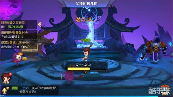 不同的家族之间难免会有一些恩怨,其他家族若来捣乱这个仇自然要报回去,偷偷潜入其他家族把他们的巡逻小妖干掉吧。只要在敌方家族领地干掉3只巡逻的小妖任务便可完成了。