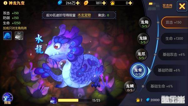 传说中神龙是家族的庇护神兽,小妖初出茅庐、闯荡妖仙世界时加入一个志同道合的家族即可获得神龙的守护。而要是有了龙魂石,还能培养出专属于自己的九变神龙。玩家每日进行召魂即有一定概率可以获得龙魂石,使用龙魂石培养神龙的不同部位,神龙便会随即保护战斗中相对应阵位的伙伴,使他们获得属性加成。当神龙全部部位培养完毕时,神龙将会蜕变至最高阶,而正在培养中的神龙还会显示在战斗中,给你的对手施加压力。如果想要离开家族也别担心,已培养神龙的属性加成还会继续生效,帮助你战无不胜。