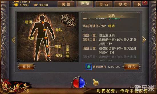 同激活技能一样,升级技能也需要通过经脉。已打通的一重经脉可继续强化穴位,成为二重经脉、三重经脉,最高至五层经脉,其对应技能也与经脉同步升级。强化精炼所需的舒筋活络丹数量相比激活时多很多。升级后的技能不仅提升了伤害,技能中带的效果也可得到提升,比如攻击目标、定身时长、击退距离等。